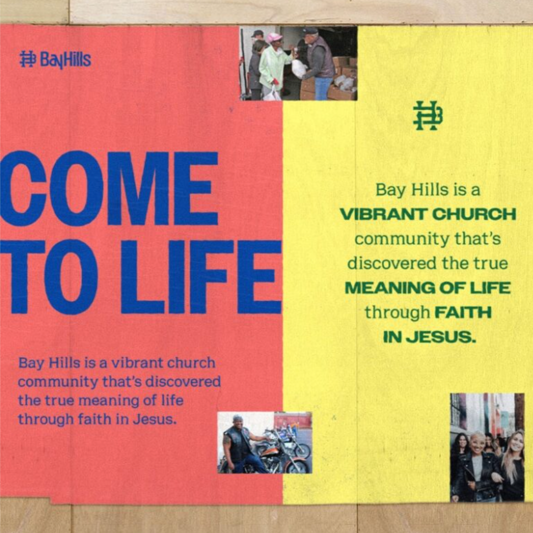 Another white-label project, Creator developed the brand strategy, verbal identity, and tagline for Bay Hills Church in Richmond, California.